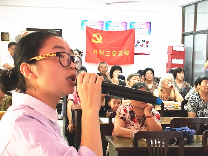 ??? 7月23日,衢州市人民醫(yī)院血管外科、肝膽外科(一)青年文明號(hào),聯(lián)合外科的黨員志愿者們,利用休息時(shí)間來(lái)到市區(qū)雙港社區(qū)開(kāi)展健康教育知識(shí)講座,并宣傳醫(yī)院“最多跑一次”改革的便民惠民舉措。