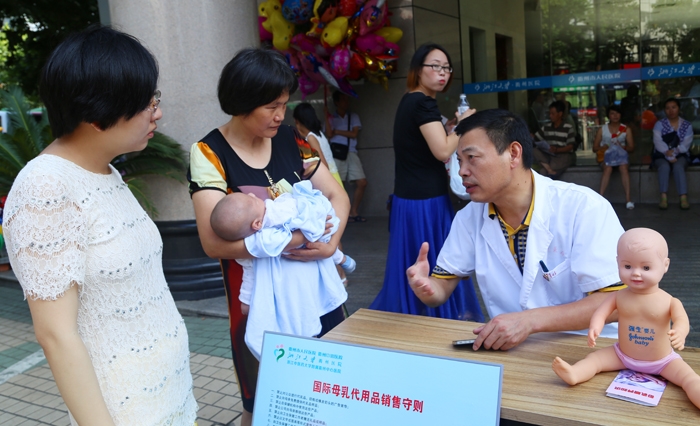 ??? 8月1日—7日是第23個(gè)“世界母乳喂養(yǎng)周”。期間,衢州市人民醫(yī)院產(chǎn)科舉辦“母乳喂養(yǎng)知識展覽”等一系列活動,讓市民正確認(rèn)識母乳喂養(yǎng),并鼓勵(lì)大家進(jìn)行母乳喂養(yǎng)。
