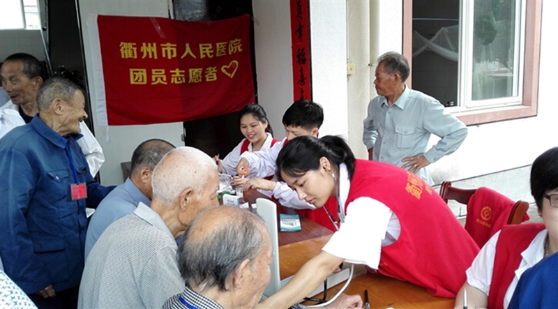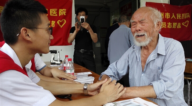 ??? 儀式結(jié)束后,我院志愿者一行10人來(lái)到航埠鎮(zhèn)敬老院,醫(yī)生護(hù)士立即忙碌開(kāi)來(lái),為50余位孤寡老人測(cè)血壓、測(cè)血糖、眼部檢查及疾病咨詢,講解健康知識(shí)。隨后,陪老人拉家常、傾聽(tīng)老人的訴說(shuō),敬老院的各個(gè)角落都能看到志愿者忙碌的身影,幸福的笑容洋溢在每一位老人的臉上。