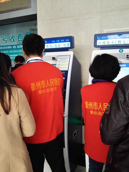??? 翁文淵、洪波、徐禮峰、葉根倪、王金妹、楊建琴、盧金仙、黃素仙、繆惠芳、胡美華、張月萍、徐蘇珍、胡曉芬、周土蘭、邱武佩、嚴(yán)紅雁、王宇寧等17人在衢州市人民醫(yī)院做志愿者,主要來自社會志愿者。 志愿者們主要為患者指路引導(dǎo),陪伴行動不便、年老體弱患者就診,指導(dǎo)患者自助服務(wù)機(jī)使用方法,引導(dǎo)患者化驗前取號、打印化驗單,協(xié)助門診大廳工作人員疏導(dǎo)病人。