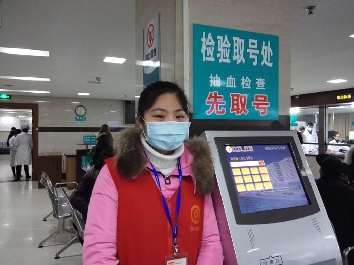 ??? 吳暢、劉翌純、羅霽萍、吳琛凱等4人在衢州市人民醫(yī)院做志愿者,志愿者們主要為患者指路引導(dǎo),陪伴行動(dòng)不便、年老體弱患者就診,指導(dǎo)患者自助服務(wù)機(jī)使用方法,引導(dǎo)患者化驗(yàn)前取號(hào)、打印化驗(yàn)單,協(xié)助門診大廳工作人員疏導(dǎo)病人。