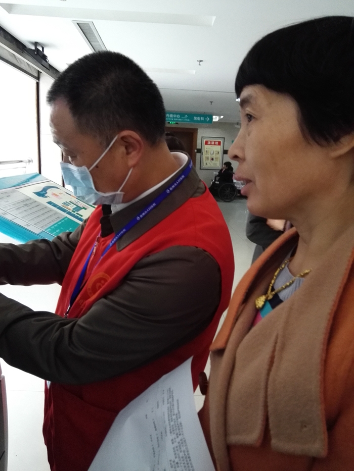 ???? 2015年11月3日,吳善水、胡曉芬、嚴(yán)紅雁、何君亞、陳佳麗、胡澤富、何建陽(yáng)、曹敏、楊建琴、周莉芬、邱武佩、王金仙、周土蘭、翁文淵等14人在衢州市人民醫(yī)院做志愿者,他們累計(jì)服 務(wù)時(shí)間500余小時(shí)。志愿者們主要在門(mén)診大廳一樓至五樓接受患者咨詢(xún)、引導(dǎo)自助服務(wù)機(jī)使用方法、流動(dòng)服務(wù)、幫助身體虛弱及身心障礙者等提供引導(dǎo)、協(xié)助門(mén)診大廳工作人員疏導(dǎo)病人。