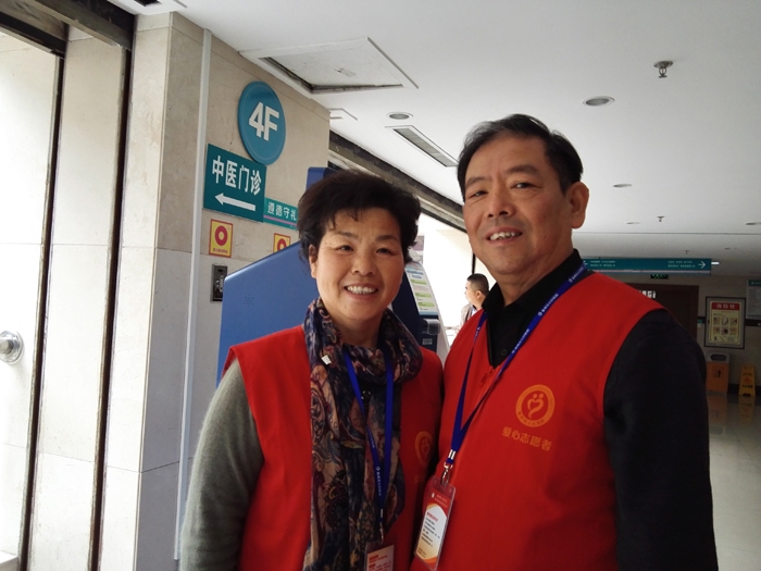 ??? 姜金霞、洪波、徐利珍、洪顏、老小芊、王建中、董建玲、徐利萍、楊琴等13人在衢州市人民醫(yī)院做志愿者,其中王建中夫婦不管刮風下雨都堅持每周一次來做志愿者,他們服務累計時間400余小時。志愿者們主要在門診大廳一樓至五樓接受患者咨詢、引導自助服務機使用方法、流動服務,幫助身體虛弱及身心障礙者等提供引導、協(xié)助門診大廳工作人員疏導病人。