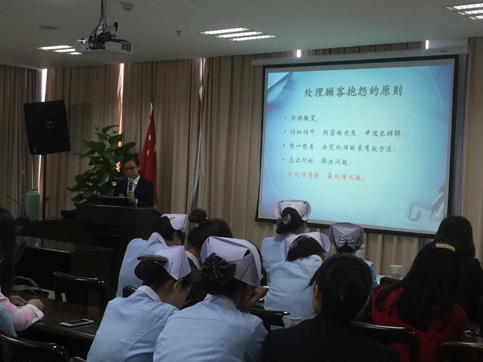 ??? 此次授課的老師均來自本院,曾接受臺灣知名護理行政管理、服務規(guī)范化專家許素貞的禮儀培訓。著重從崗位形象、著裝、語言技巧、行為禮儀、接待禮儀、電話禮儀、抱怨應對等十二個方面進行培訓,講課內容生動、貼近現(xiàn)實、互動豐富,受到了聽課人員的一致好評。