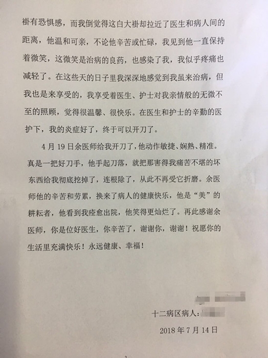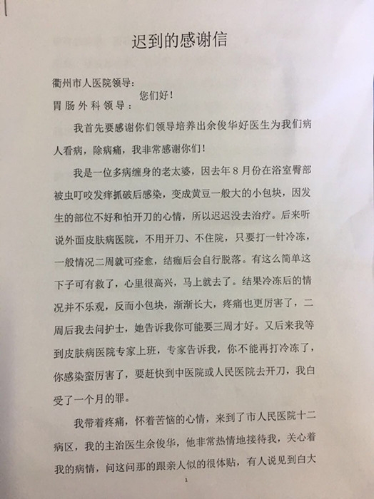 感謝信(致余俊華醫(yī)生) 文章來(lái)源: 作者: 點(diǎn)擊數(shù):10842 更新時(shí)間:2018-08-07 上一篇: 感謝信 下一篇: 感謝信(致衢州市人民醫(yī)院)
