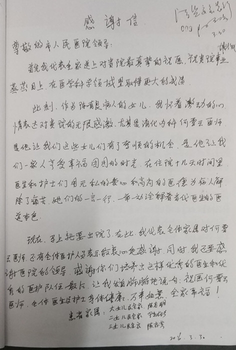 感謝信(致消化內(nèi)科何雪云醫(yī)師) 文章來源: 作者: 點(diǎn)擊數(shù):8294 更新時(shí)間:2016-03-30 上一篇: 感謝信 下一篇: 感謝信(致余俊華醫(yī)生)