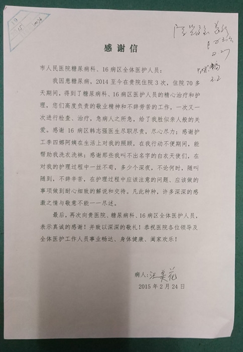 感謝信(致內(nèi)分泌科、呼吸內(nèi)科)