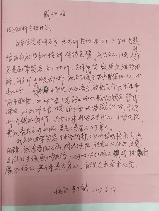 感謝信(致內(nèi)分泌科)