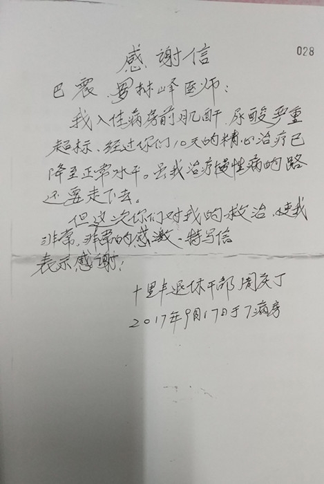 感謝信(致腎內(nèi)科巴震、羅林峰醫(yī)師)