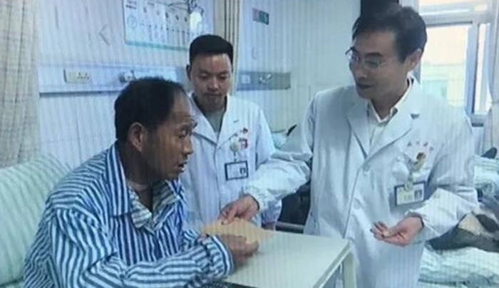 ??? 11月20日上午,醫(yī)院黨委書(shū)記徐天才來(lái)到心胸外科病區(qū),為周良送上了“黨員醫(yī)療救助基金”三千元,周良感激萬(wàn)分,他在感謝信中寫(xiě)到:此刻,我萬(wàn)分感恩,心中言語(yǔ)難盡,在我出院之際,我衷心感謝人民醫(yī)院的領(lǐng)導(dǎo)和醫(yī)生,衷心感謝萬(wàn)海軍醫(yī)生超高醫(yī)德和精湛醫(yī)術(shù)。