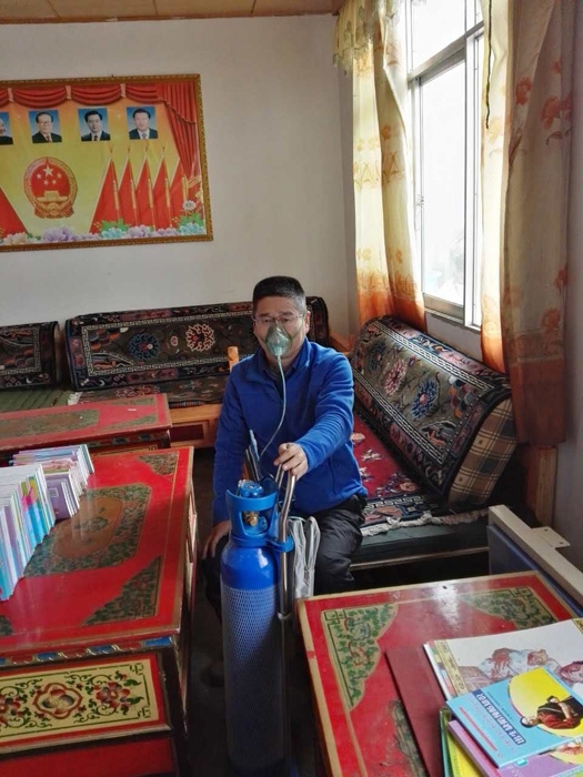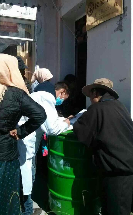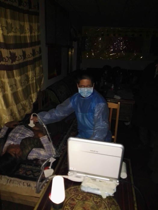??? 經(jīng)過短暫休整與適應(yīng),我所在的流調(diào)四組去的第一個(gè)篩查點(diǎn)是古露鎮(zhèn)俄瑪村。我們一行3人驅(qū)車4小時(shí)來到達(dá)俄瑪村居委會(huì),發(fā)現(xiàn)當(dāng)?shù)貤l件異常艱苦,沒有合適的B超檢查床,只能搬來桌椅,作為臨時(shí)擺放B超機(jī)及檢查床。剛剛擺放好開始檢查,又傳來了停電的消息。在西藏,停電是再普遍不過的事情??粗鹤永镌絹碓蕉嗟哪撩?,為了不讓他們失望,我們?cè)谟帽M了B超機(jī)內(nèi)置的電池后,村長(zhǎng)終于搬來了一臺(tái)發(fā)電機(jī),不敢耽誤一分鐘,終于完成了該村120多人的檢查,回到駐地已是晚上九點(diǎn)多。