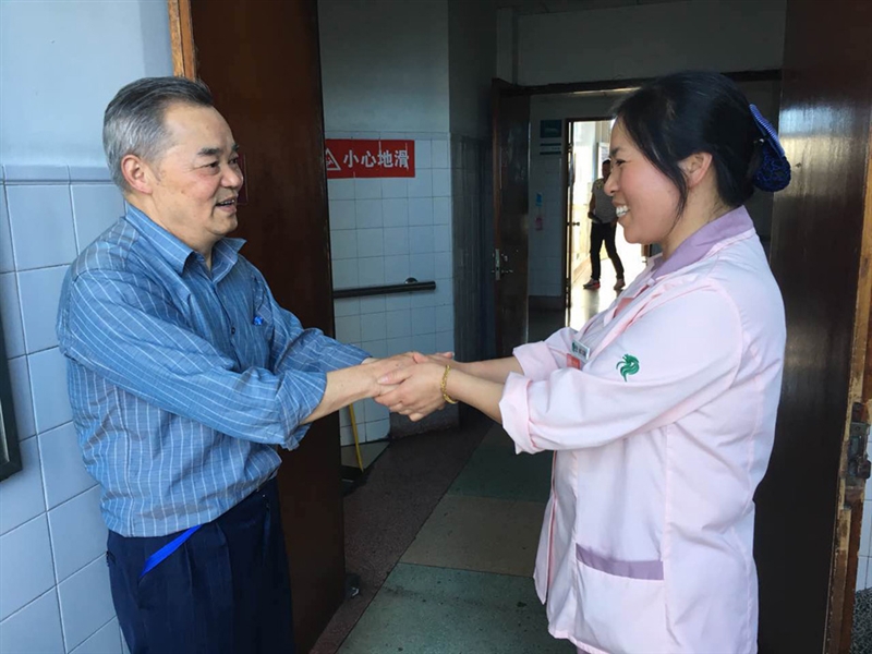 ??? 當(dāng)徐英和家屬把錦旗送到王阿姨手上時(shí),靦腆的她露出了羞澀的笑容,很多圍觀的病人和家屬都對(duì)王阿姨豎起了大拇指,嘖嘖稱贊……