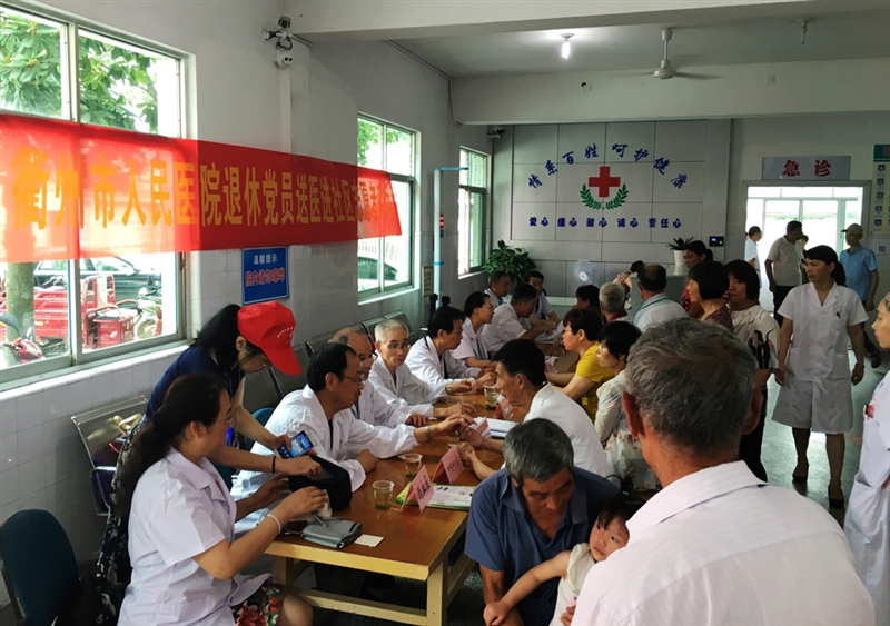 ??? 當(dāng)天上午, 我院離退休支部組織呼吸內(nèi)科、感染科、骨科、神經(jīng)內(nèi)科、中醫(yī)科、消化內(nèi)科、婦科等退休黨員一行14人開展“送醫(yī)進社區(qū)”志愿者服務(wù)活動。在義診現(xiàn)場,專家們詳細詢問來診群眾的病情,認真進行檢查、診斷,耐心解答群眾提出的各種問題,并為群眾發(fā)放健康宣教資料。