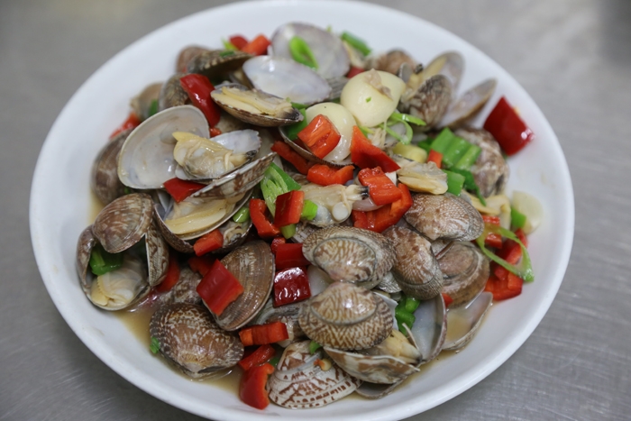 原料(花蛤400 克、青紅椒、姜、蒜等)