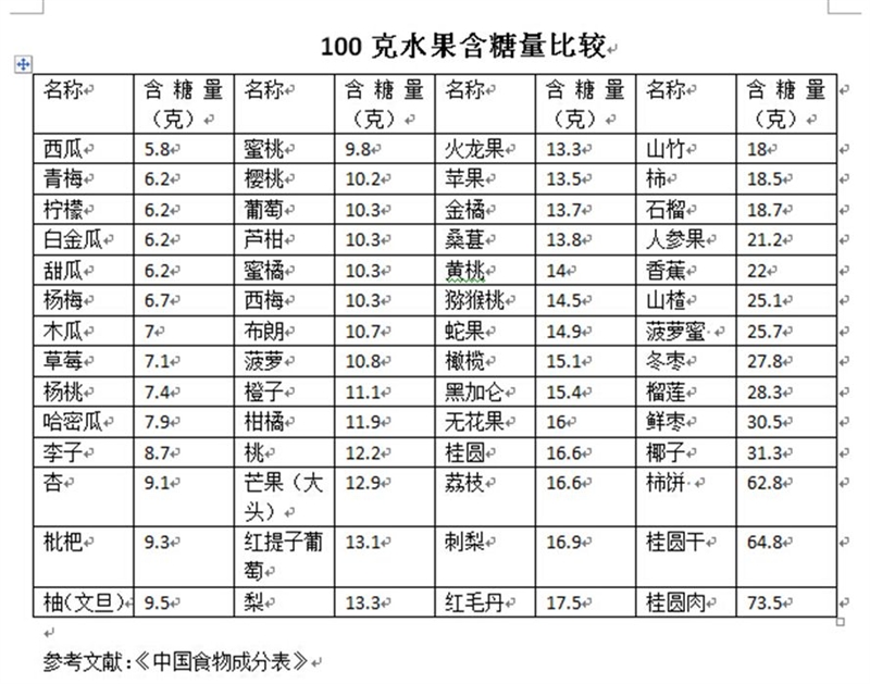 ??? 對于許多糖媽媽來說,能不能吃水果?可以吃哪些水果一直是個(gè)困擾。大部分患者對水果的選擇會根據(jù)水果的甜度來選擇,比如認(rèn)為火龍果不甜可以吃,西瓜很甜不能吃。而事實(shí)上水果的甜度是由本身所含的糖的種類及含量決定的,并不是越甜就代表這種水果含糖量越高。水果中所含的糖主要有果糖、葡萄糖、蔗糖。果糖的甜度是葡萄糖的2-3倍、是蔗糖的1.7倍??梢娝橇扛叩筒皇桥袛嗵鸲鹊奈ㄒ恢笜?biāo)。那么糖媽媽該如何選擇水果呢?