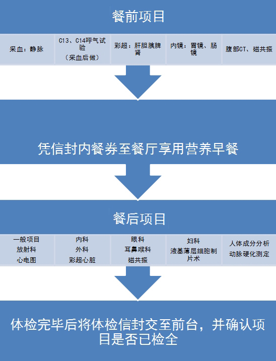 體檢流程 文章來(lái)源:健康管理中心 作者: 點(diǎn)擊數(shù):18801 更新時(shí)間:2019-11-14 餐后項(xiàng)目亦可在餐前進(jìn)行 上一篇: 衢州市人民醫(yī)院健康管理中心簡(jiǎn)介 下一篇: 2019年體檢套餐 (女)