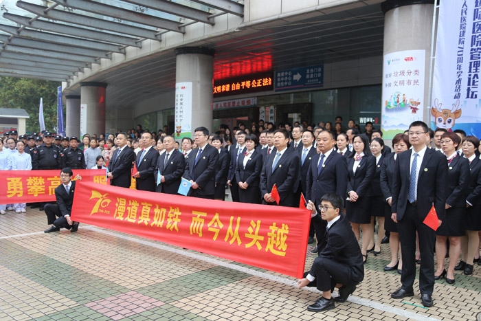 “70年來我們始終堅持‘救死扶傷’的革命精神,秉承‘忠誠、嚴(yán)謹(jǐn)、謙和、創(chuàng)新’的八字院風(fēng),始終把人民群眾的健康放在首位,推動著醫(yī)院不斷向前發(fā)展?!秉h委書記徐天才在講話中表示,展望未來,我院將站在新的起點,面向新的使命,全體衢醫(yī)人將更加團(tuán)結(jié)一致,在市委“活力新衢州 美麗大花園”和“1433”戰(zhàn)略發(fā)展體系的引領(lǐng)下,傳承醫(yī)院優(yōu)良傳統(tǒng)。在新時代展示新作為、新?lián)?dāng),以高度的責(zé)任感、高尚的醫(yī)德和主人翁意識推動四省邊際中心醫(yī)院再次揚帆遠(yuǎn)航。