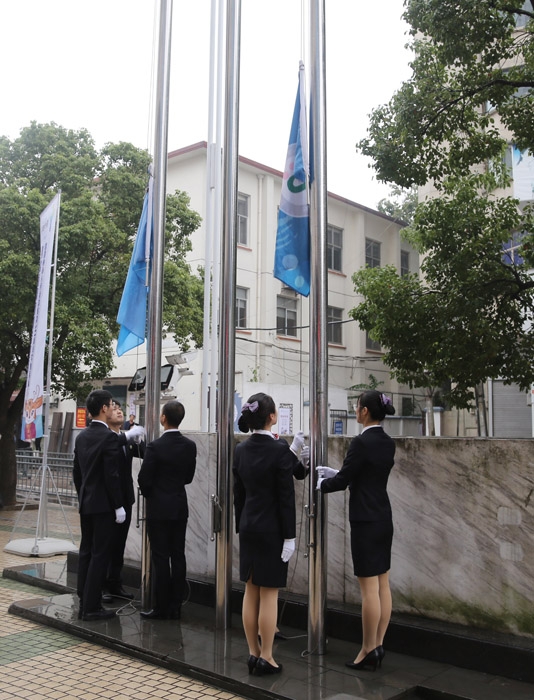 一曲《我愛你中國》薩克斯演奏拉開了序幕,由院領(lǐng)導(dǎo)班子、臨床一線醫(yī)護(hù)人員代表、行政后勤員工、社會志愿者代表等組成的各大方隊共同列隊演唱。隨后,全體人員向國旗行注目禮,唱國歌,升旗儀式莊嚴(yán)隆重。在院歌聲中,有著扎根衢州、齊心協(xié)力、攜手同行寓意的我院院旗也隨之升起。