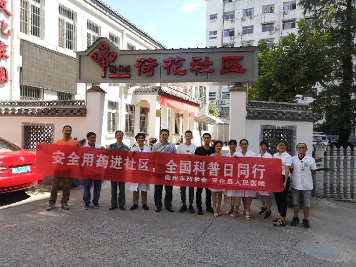??? 為了以“安全用藥”科普宣傳為己任,緊扣“創(chuàng)新引領(lǐng)時代,智慧點(diǎn)亮生活”主題,9月19日,“安全用藥進(jìn)社區(qū),全國科普日同行”活動在開化荷花社區(qū)舉行。本次活動由衢州市藥學(xué)會主辦、我院、開化縣人民醫(yī)院承辦、開化縣荷花社區(qū)、開化縣藥學(xué)會協(xié)辦。