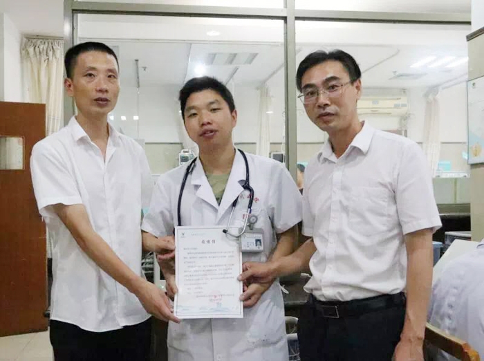 ??? 9月20日下午,市創(chuàng)建辦專職副主任周宏波一行來(lái)到我院,為參與交通文明勸導(dǎo)志愿活動(dòng)工作中表現(xiàn)突出的急診科醫(yī)生李俊華送上感謝信。