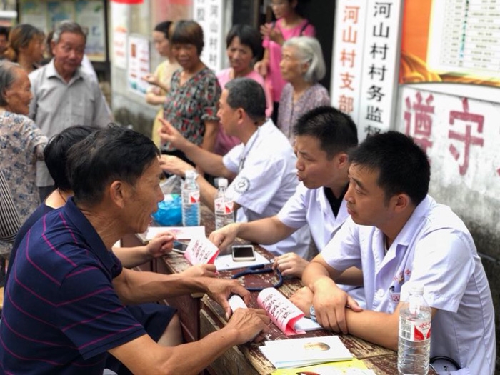 ??? 除了在主城區(qū)開(kāi)展公益義診外,我院內(nèi)科二黨支部的志愿者們一早驅(qū)車來(lái)到柯城區(qū)溝溪鄉(xiāng)河山村,送醫(yī)送健康下鄉(xiāng),給當(dāng)?shù)乩习傩諑デ星袑?shí)實(shí)的福利。