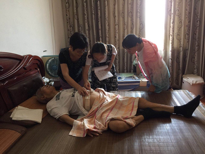 ????在腹透腎友家中,醫(yī)護(hù)人員看到患者經(jīng)過(guò)治療能回歸到日常的生活中,感到十分欣慰,同時(shí),給予腹透腎友專(zhuān)業(yè)的指導(dǎo),如:評(píng)估腹透患者的透析環(huán)境、指導(dǎo)紫外線燈的安裝使用方法;了解患者換液操作是否規(guī)范,透析日記本是否及時(shí)記錄;檢查每位患者的出口處皮膚及下肢有無(wú)水腫等情況,強(qiáng)調(diào)規(guī)范換藥的重要性;詢問(wèn)患者的飲食、血壓、尿量、體重及服藥情況;整理患者的家庭備用藥品,查看藥品有效期,詢問(wèn)服藥后有無(wú)不良反應(yīng),并告知在服藥期間的注意事項(xiàng)等。同時(shí),針對(duì)患者的不同情況,醫(yī)護(hù)人員進(jìn)行了個(gè)性化指導(dǎo)。
