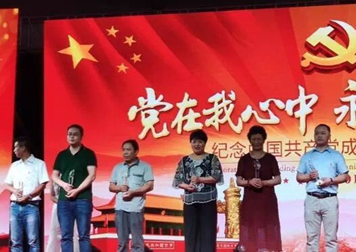 ??? 廖圣被廿里鎮(zhèn)黨委評(píng)為“最美廿里人”(左二)