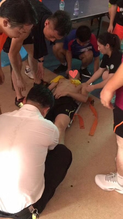 ??? 疏散人群,打開大功率風(fēng)扇降溫,其它球員見狀也一同協(xié)助急救。