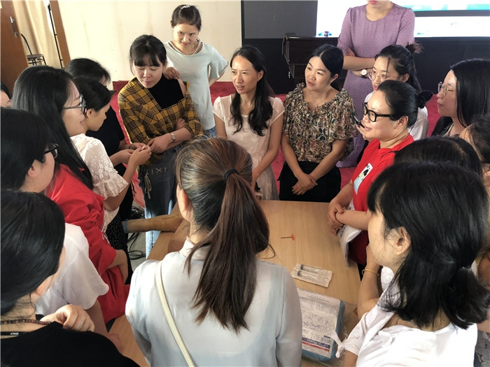??? 授課結(jié)束后,麗水中心醫(yī)院PICC專科護士劉澤梅和我院PICC??谱o士葉曉慧以工作坊的形式,分組進行規(guī)范置管與維護操作流程示范,為學(xué)員逐一進行了操作考核。