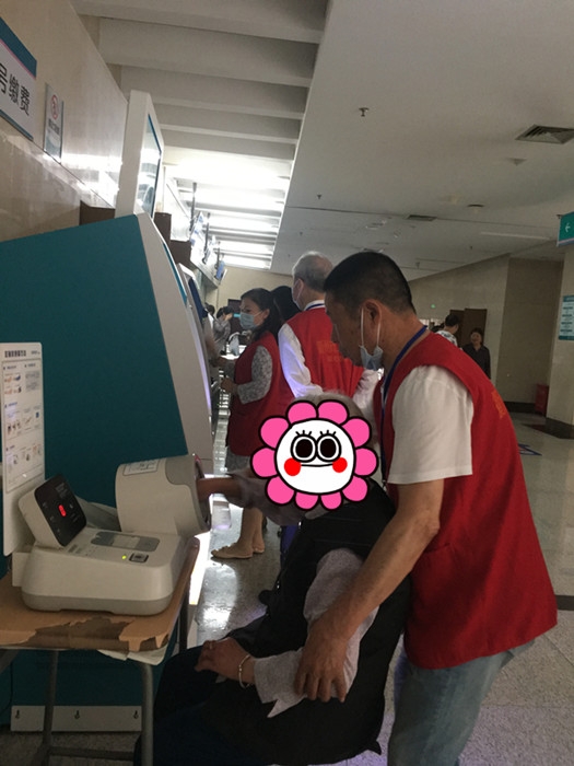 ??? “隨著社會(huì)老齡化的加重,在門診經(jīng)常會(huì)遇到這樣的老人,他們?yōu)榱瞬挥绊懽优恼9ぷ骱蜕钸x擇獨(dú)自就醫(yī)。為了幫助那些行動(dòng)不便、對(duì)就醫(yī)流程不熟悉的患者,醫(yī)院一直有志愿者團(tuán)隊(duì)提供引導(dǎo)陪同等服務(wù),志愿者推著輪椅陪同老人看病在我們醫(yī)院十分常見?!?門診護(hù)理單元張麗萍護(hù)士長(zhǎng)介紹。