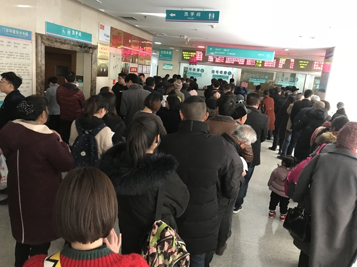 春節(jié)假日期間的門診大廳排起了長(zhǎng)龍
