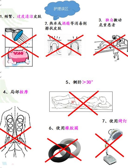 ???? 預防壓瘡同樣也適用于家庭,我國60歲以上老年人有近4000萬失能和部分失能老人,這部分老人仍以居家照護為主,普通家庭照護者知識水平有限,對壓力性損傷(壓瘡)預防的意識不夠,居家老人的壓瘡預防已是我們無法回避的現(xiàn)實問題。因此,對于居家老人及照護者宣傳和普及壓瘡預防知識尤為重要。研究顯示,進行壓瘡風險評估及采取正常的預防護理措施,可使壓瘡的發(fā)生率下降50-60%。讓我們一起行動起來吧!