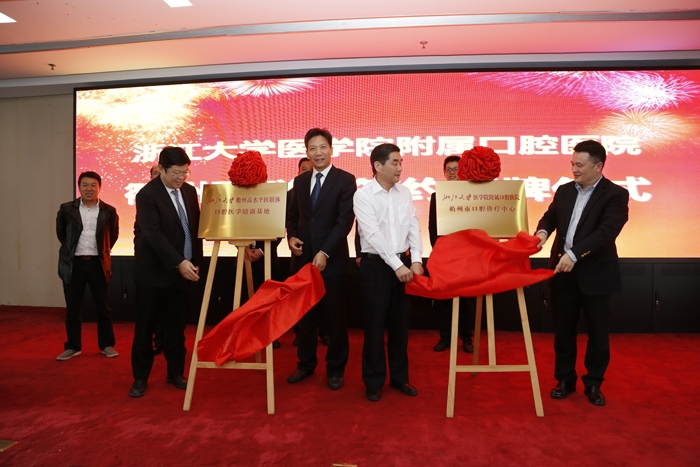 ??? 隨后,雙方為“浙江大學(xué)衢州市口腔診療中心”、“浙江大學(xué)·衢州高水平醫(yī)聯(lián)體口腔醫(yī)學(xué)培訓(xùn)基地”揭牌,標(biāo)志著我院口腔科正式與浙江大學(xué)醫(yī)學(xué)院附屬口腔醫(yī)院組建成醫(yī)聯(lián)體,并正式啟動(dòng)運(yùn)行。