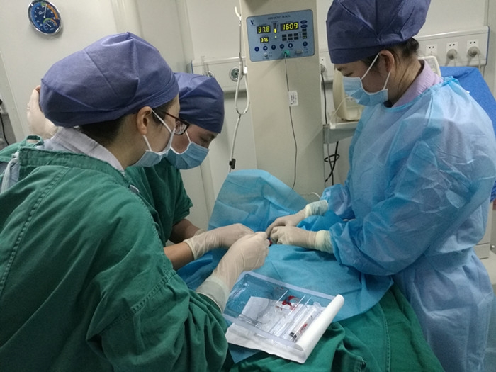 ??? 據(jù)介紹,極低出生體重兒在早期所需營養(yǎng)主要來自靜脈營養(yǎng),但早產(chǎn)兒靜脈脆弱,外周穿刺困難,且反復(fù)穿刺對外周血管破壞較大,增加患兒痛苦及護理工作難度。