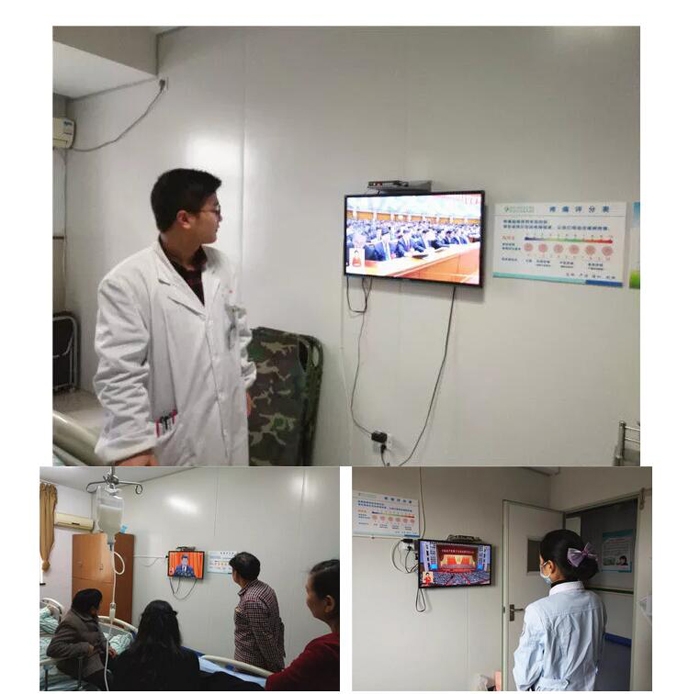 ??? 醫(yī)護(hù)人員和患者家屬一起觀看了開幕會盛況