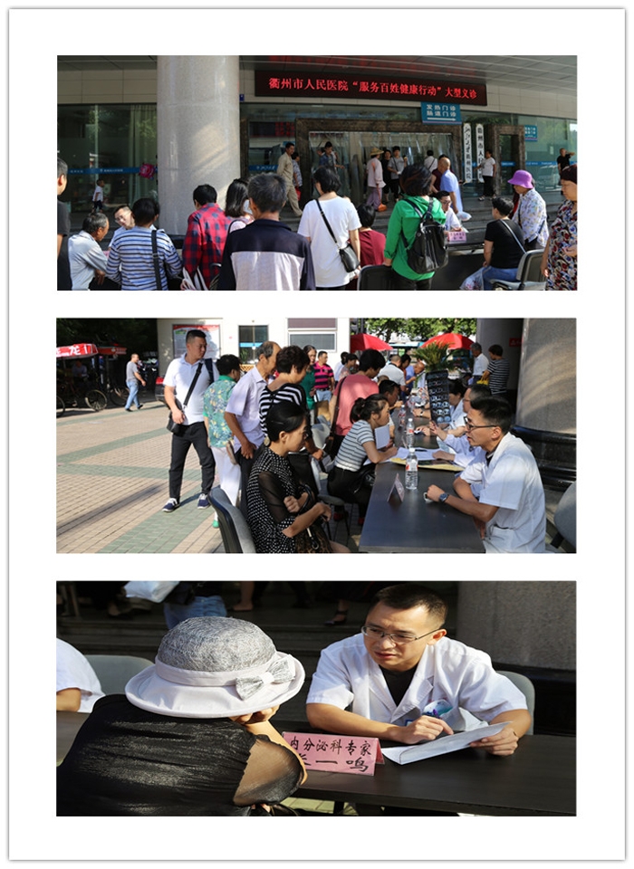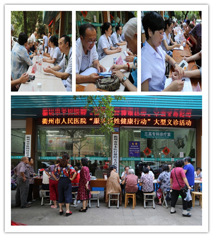 ??? 為響應(yīng)市衛(wèi)計委關(guān)于舉辦2017年“服務(wù)百姓健康行動”大型義診活動周的號召,進一步加強健康和醫(yī)學(xué)知識的宣傳普及,推行便民惠民措施,9月11日—14日,我院組織了一批醫(yī)德高、業(yè)務(wù)精、能吃苦耐勞的專家團隊,分別在門診一樓大廳、柯城區(qū)興華社區(qū)、柯城區(qū)九華衛(wèi)生院、開化縣人民醫(yī)院、貴州六枝特區(qū)人民醫(yī)院進行了大型義診活動。