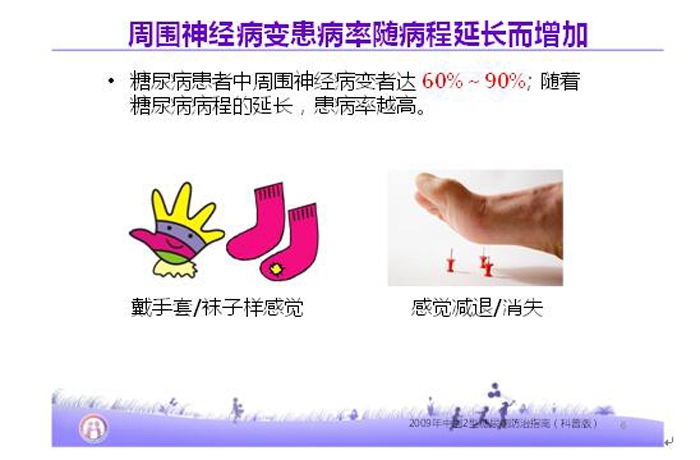 ????糖尿病周?chē)窠?jīng)病變與長(zhǎng)期高血糖以及微血管病變有關(guān)。周?chē)窠?jīng)病變可表現(xiàn)為對(duì)稱性的手套樣或襪套樣感覺(jué)障礙,如麻木、疼痛、感覺(jué)異常、灼熱感,后期可表現(xiàn)為感覺(jué)減退甚至消失。