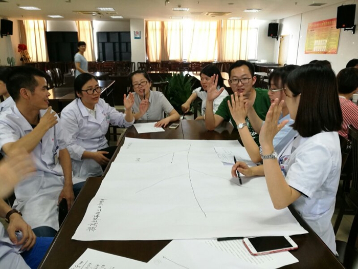 ??? 培訓(xùn)講師是醫(yī)院質(zhì)控處處長方英,她深情并茂、游刃有余的講課,加上精簡、實(shí)用、可操作的授課內(nèi)容,讓一線醫(yī)生更容易接受。各個臨床醫(yī)技科室的主任、住院總代教、質(zhì)量監(jiān)管員等都自覺參與其中,選好主題并尋根問底探求真因,積極獻(xiàn)計(jì)獻(xiàn)策,猶如一場頭腦風(fēng)暴。