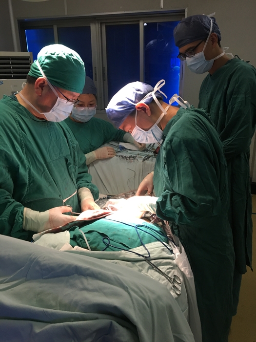 ??? 今年62歲的老徐,不久前吃飯時不明原因出現(xiàn)吞咽困難,來到我院求診,經(jīng)檢查為食道下端鱗狀細胞癌。心胸外科采用具有國內(nèi)先進水平的胸腔鏡、腹腔鏡聯(lián)合新技術(shù),成功為他實施了全腔鏡下三切口食管癌根治術(shù)。