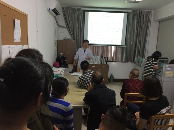 ??? 5月15日下午,我院內(nèi)分泌科示教室內(nèi)座無虛席,還有站著認(rèn)真聽課的醫(yī)學(xué)院見習(xí)生。我院營養(yǎng)科的營養(yǎng)師給住院的糖尿病患者進(jìn)行系統(tǒng)的飲食教育講座。