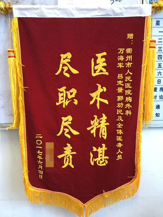 ??? 心胸外科萬海軍副主任醫(yī)師診斷葉女士患有“凝固性血胸,左乳內(nèi)血管損傷”。立即對葉女士進(jìn)行了胸腔鏡下“胸腔探查止血+血腫清除術(shù)”。術(shù)后,葉女士生命體征平穩(wěn),術(shù)后第3天就康復(fù)出院了。
