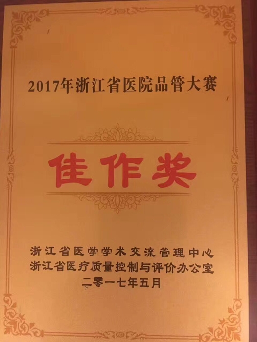 ??? 5月26日,在杭州舉辦的2017年浙江省醫(yī)院品管大賽上,我院“垂體瘤鉗包丟失事件RCA分析報告”項目獲得佳作獎。