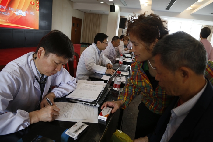 ??? 義診一開始,慕名而來的患者就迫不及待地走向一字排開的義診臺前,紛紛拿出就診病歷、影像資料和檢查資料。不到一小時,120份免費義診號已被領(lǐng)完。面對群眾的急切需要和心情,參加義診的醫(yī)護(hù)人員熱情、耐心、專業(yè)地為廣大群眾進(jìn)行常見病、慢性病的咨詢、初步篩查、診斷和一般治療,正確地提出診斷和治療建議并普及醫(yī)學(xué)常識和健康知識。