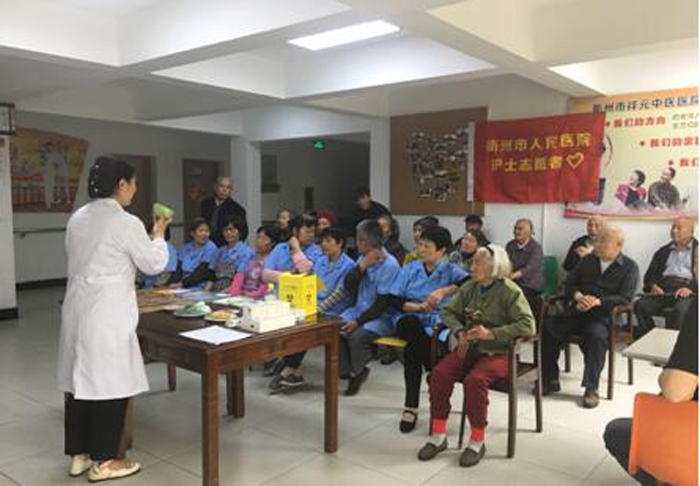 ??? 護(hù)士長們?yōu)轲B(yǎng)老院的老人、護(hù)工和工作人員進(jìn)行了老年人安全護(hù)理知識培訓(xùn),就老年人常見的燙傷、窒息、墜床、壓瘡等問題的預(yù)防、處理作了詳細(xì)的講解。