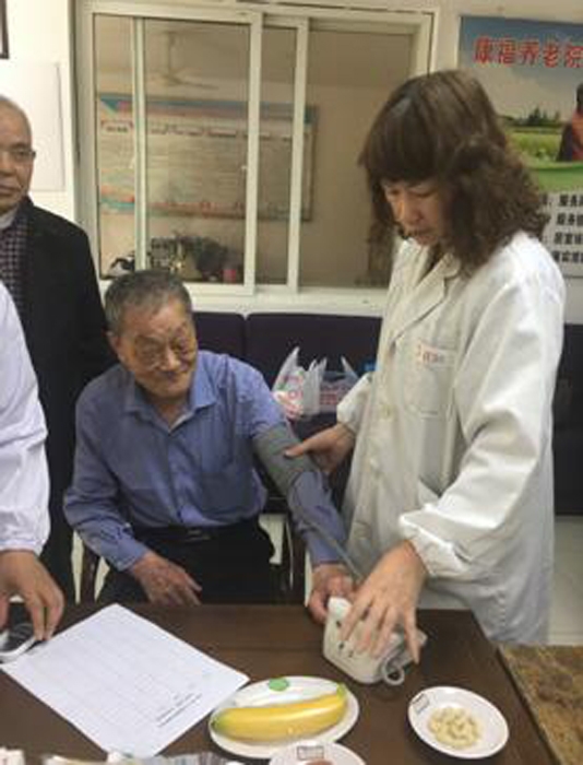 培訓(xùn)結(jié)束后,白衣天使們免費(fèi)為老人們測血糖、量血壓