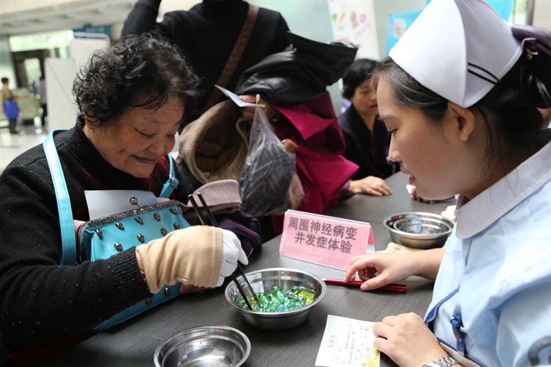 ??? 據(jù)內(nèi)分泌代謝病科護士長陳育群介紹,活動主要是提高群眾對糖尿病疾病的認(rèn)知程度,普及正確科學(xué)的糖尿病控制知識。糖尿病是由內(nèi)分泌失調(diào)所引起的疾病,長期存在的高血糖易導(dǎo)致眼、腎、心臟、血管、神經(jīng)的慢性損害、功能障礙等并發(fā)癥。今天免費為糖尿病患者做空腹血糖測試、血壓檢測,利用體驗活動為患者測試神經(jīng)病變,很好地保證了測試結(jié)果的準(zhǔn)確度。