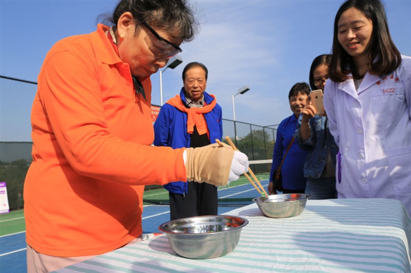 ??? 這是我院專(zhuān)門(mén)為糖友們?cè)O(shè)計(jì)的趣味運(yùn)動(dòng)會(huì)。糖友們戴著專(zhuān)用眼睛和手套,以模擬糖尿病并發(fā)癥給身體帶來(lái)的干擾。這樣的趣味運(yùn)動(dòng)會(huì),既提高了糖友們對(duì)糖尿病的認(rèn)識(shí),又為他們提供了一個(gè)相互交流、相互激勵(lì)的平臺(tái)。