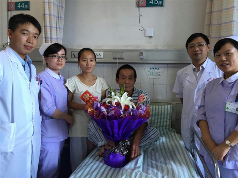??? “你們不僅為我治病,還為我捐款,我真的不知道該怎么報(bào)答你們這些好心人,醫(yī)生、護(hù)士,真心地感謝你們……”7月11日下午,當(dāng)十一A病區(qū)醫(yī)護(hù)人員將愛心捐款和鮮花交到老吳的手中時(shí),老吳一家連聲道謝。