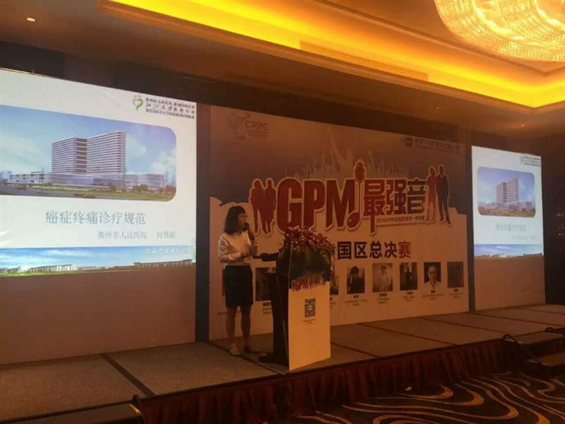 ??? GPM(癌痛規(guī)范化治療示范病房)最強音暨好病例演講比賽在5月9日拉開序幕,我院腫瘤放療科王燕醫(yī)師的“安享睡眠——無痛病例分享”為主題的演講比賽病例分別榮獲金麗衢區(qū)域第一名及浙江省第一名的好成績,與浙江省另三位選手一起參加?xùn)|中國區(qū)賽。
