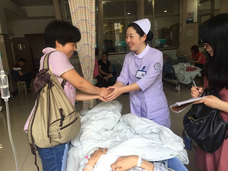 ??? 當時朱東旭緊急施救的這一幕正好被小區(qū)的熱心市民拍下,微信朋友圈里頓時散播開來。救人的朱東旭是衢州市人民醫(yī)院門診護理單元的護士,她性格開朗,為人熱情,是同事眼中的開心果。
